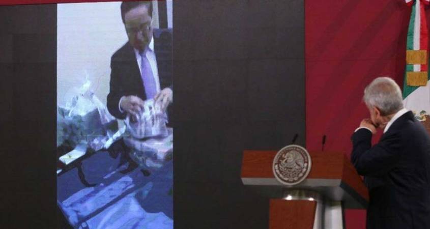 Debido a que “no se ha difundido mucho el video y no se habla del tema en las televisoras”, el presidente Andrés Manuel López Obrador presentó ayer en su conferencia de prensa el video donde se observa a dos exfuncionarios recibiendo fajos de billetes.