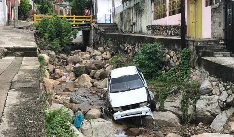 Inundaciones en varias colonias populares de Acapulco, vehículos arrastrados por la corriente, caída de árboles y deslaves de tierra y piedras en la avenida escénica, fueron los principales daños ocasionados por las fuertes lluvias registradas durante la noche del miércoles y madrugada del jueves.