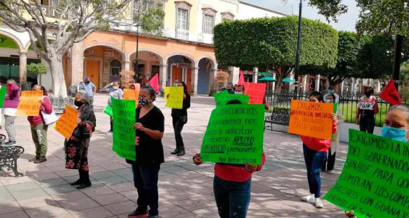 Integrantes del Movimiento Antorchista en el estado se manifestaron con una “Cadena Humana” afuera de Presidencia Municipal, para solicitar que los gobiernos estatal y municipal cumplan con apoyo alimentario permanente, al carecer de recursos por el tema de la pandemia del Covid-19.