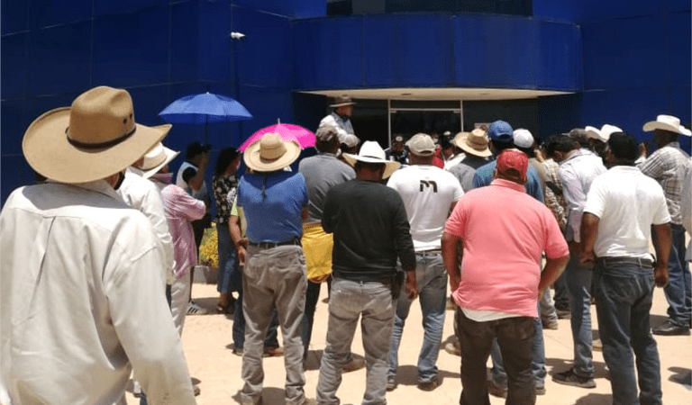 Pero la idea es que si no ceden con agua el día de mañana martes venimos y tomamos la CONAGUA con maquinaria y no únicamente aquí, también el SAT, Semarnat y demás oficinas federales del estado.