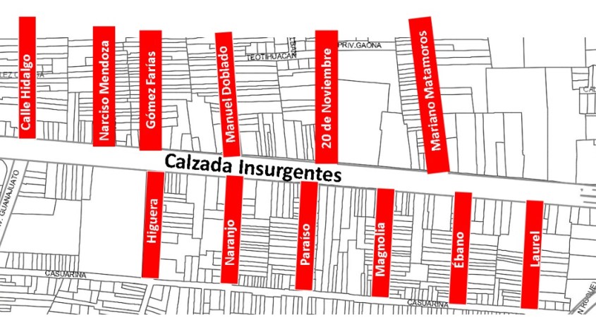 La recolección de basura en la acera norte se hará de lunes a sábado, los camiones de recolección ingresarán por las calles Matamoros, 20 de Noviembre, Manuel Doblado, Gómez Farías, Narciso Mendoza e Hidalgo.