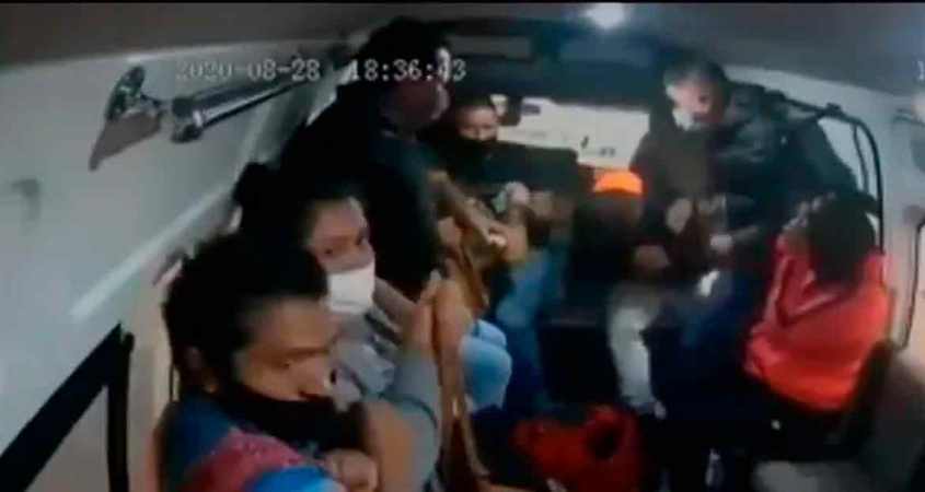 Las cámaras de seguridad captaron el momento en que dos ladrones suben a una combi y de una forma violenta comienzan disparándole a una persona para asegurarse de infundirles miedo y quitarles sus pertenencias.