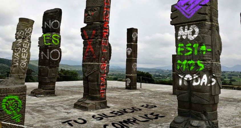 En Hidalgo, esta mañana ‘aparecieron pintas virtuales’ en los monumentos de la zona arqueológica de Tula, el ex Convento de Actopan y el Reloj Monumental de Pachuca.