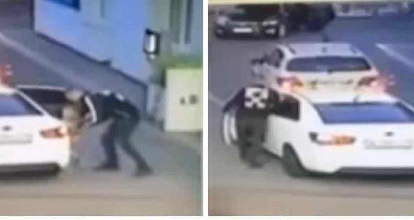 Todo fue subido a las redes para mostrar cuán fácil un hombre huye con Elizaveta Kolisnichenko en la parte trasera de un auto blanco para escapar a toda velocidad mientras la madre de la menor terminaba de pagar el servicio.