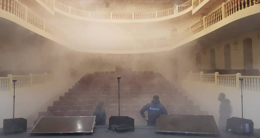 Bajo el compromiso de cuidar la salud de los sanmiguelenses, continúa la nebulización de edificios públicos, el Teatro Ángela Peralta fue sanitizado durante este fin de semana.