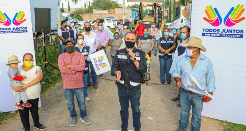 Todos juntos, dieron el banderazo de salida para comenzar la rehabilitación de la calle Ignacio Allende con pavimentación de piedra bola ahogada en cemento, serán más de 250 metros lineales con banquetas de concreto en ambos lados.