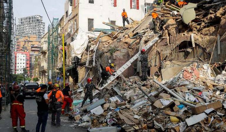 Los rescatisas chilenos, los equipos de defensa civil libaneses y los bomberos de Beirut estaban excavando la zona.