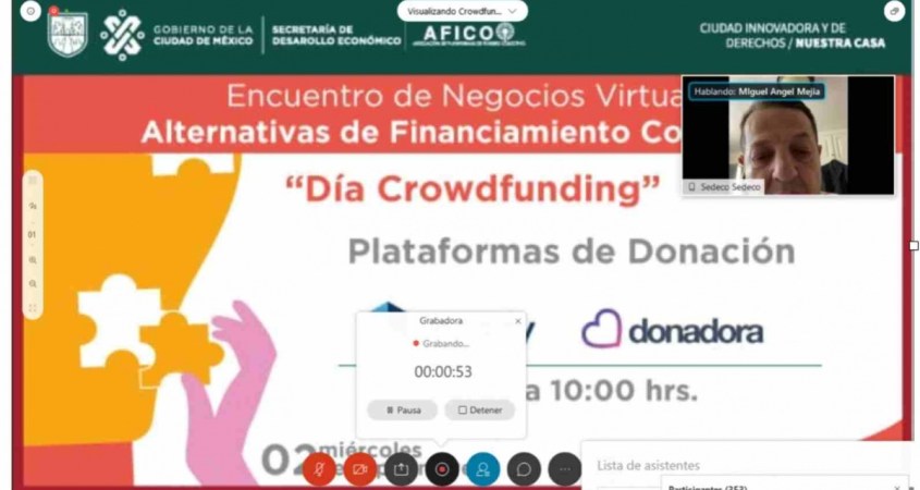 Durante más de 10 horas de transmisión en línea, los representantes de las empresas de fondeo colectivo mostraron la operación de sus plataformas a mil 34 asistentes que mostraron su interés por conocer sobre las opciones tecnológicas que existen para contar con aportaciones para desarrollar sus proyectos.
