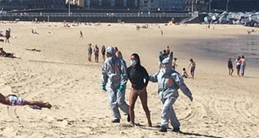 Una joven fue detenida este lunes en la playa donostiarra de Zurriola por haberse saltado el aislamiento obligatorio para personas contagiadas por coronavirus.