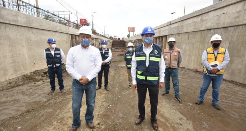 Durante el recorrido de supervisión, autoridades del Gobierno de Irapuato y Gobierno del Estado, constataron un avance del 35.5%, superior al proyectado a la fecha, por lo que, a principios de 2021 podría ponerse en marcha la primera etapa, que incluye el paso deprimido y algunas vialidades laterales.