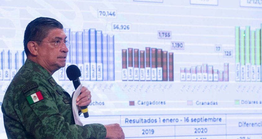 El secretario de la Defensa Nacional, Luis Cresencio Sandoval, dio cuenta de los aseguramientos de droga, armamento y numerario.