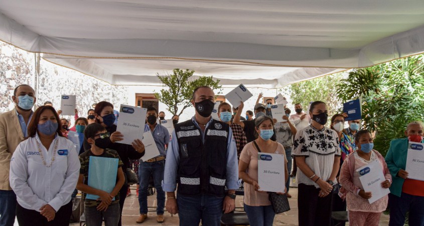 Entregan escrituras a 92 familias sanmiguelenses. El presidente municipal Luis Alberto Villarreal García y el Instituto de Seguridad en la Tenencia de la Tierra consolidaron el patrimonio de los habitantes de Laureles primera, cuarta y sexta sección y de las comunidades de Bocas y Rancho Nuevo Villa de Guanajuato; con el Programa de Regularización de Asentamientos Humanos.