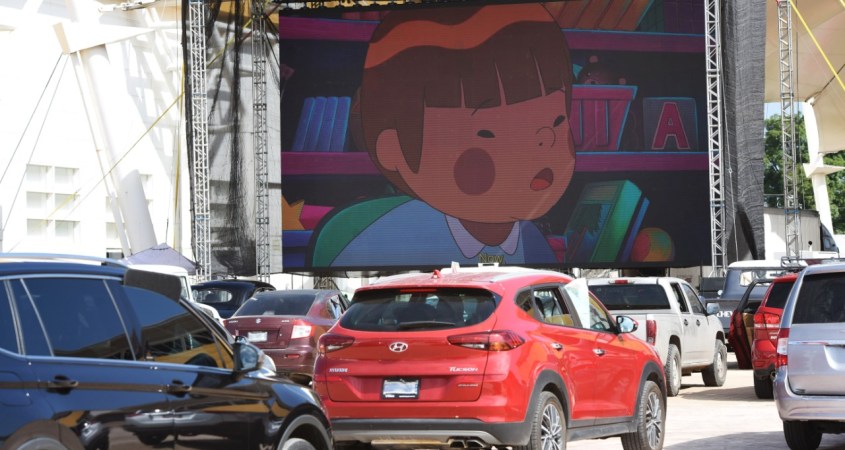 Niños y niñas, acompañados de sus padres, disfrutaron de la película ‘Un disfraz para Nicolás’, desde sus vehículos, como parte del Guanajuato Internacional Film Festival (GIFF).