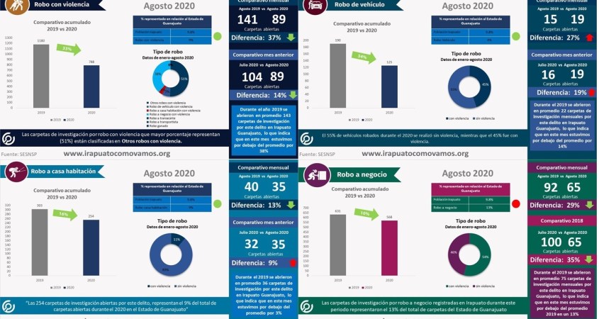 El 13% del total de carpetas abiertas por este delito en el estado de Guanajuato, se registraron en Irapuato, esto quiere decir que la incidencia delictiva de este delito en nuestro municipio está por encima de la media estatal.