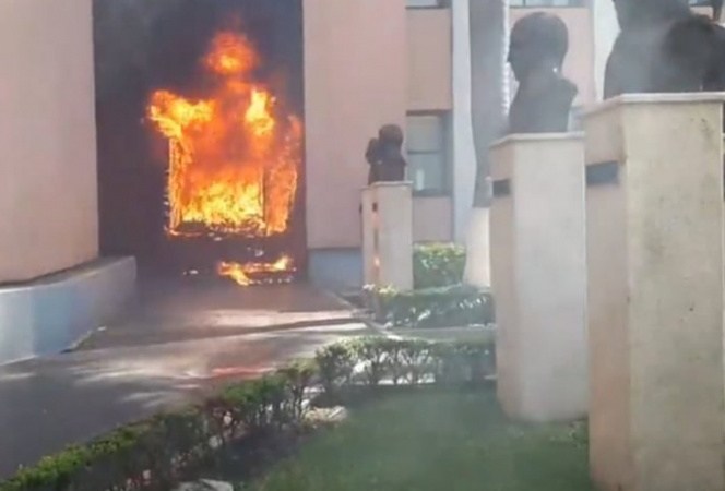 Al lugar llegaron elementos de seguridad, que no intervinieron en los actos vandálicos. Por su parte, bomberos llegaron para contralar el fuego. No se reportan lesionados.