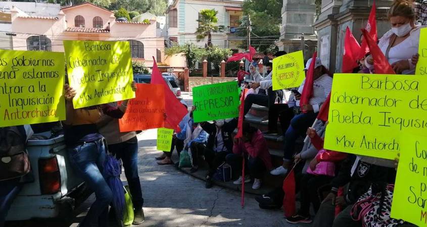 El grupo de manifestantes aprovechó para exigir la renuncia del gobernador de Puebla, Miguel Barbosa Huerta, a quien acusaron de cometer actos de represión con sus colegas en dicho estado.
