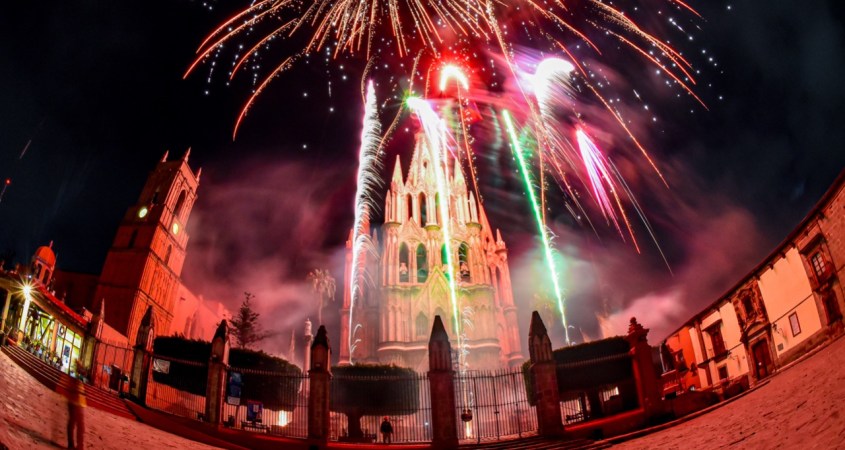 En un ambiente distinto, de alegría y nostalgia al mismo tiempo, resonaron durante 10 minutos los cuetes pajareros, bengalas y bombas lanzadas desde el atrio de la Parroquia de San Miguel Arcángel y la explanada del Jardín Principal; además, incluyó la ejecución de un piromusical con alabanzas religiosas y cánticos dedicados al santo patrono de la ciudad.