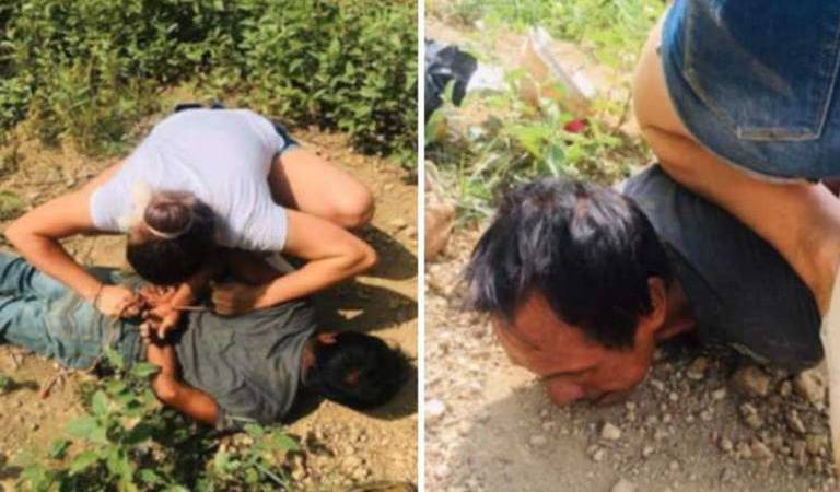 A través de unas imágenes difundidas ya en redes sociales se muestra como una mujer sometió a un presunto violador de menores en Hidalgo. En las fotografías se puede observar a la mujer amarrando las manos del hombre, quien se encuentra en el suelo, para después proceder con denunciarlo ante las autoridades correspondientes por sus actos.