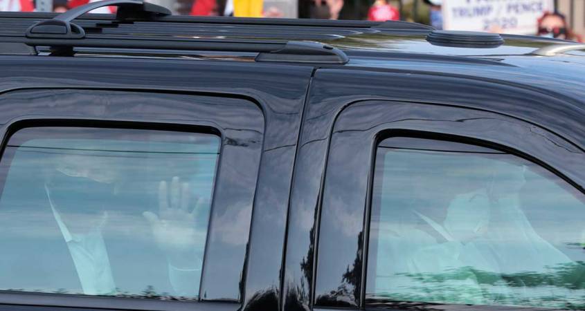 El todavía contagioso presidente sorprendió a los partidarios que se habían reunido frente al Centro Médico Militar Nacional Walter Reed, a bordo de una camioneta negra con las ventanillas subidas.