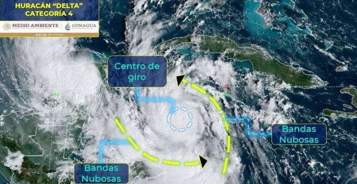 Esta mañana el huracán ‘Delta’ llegó a la categoría 4 y se dirige a Quintana Roo; autoridades del municipio de Benito Juárez lanzaron alerta roja, pues se prevén daños importantes durante su paso.