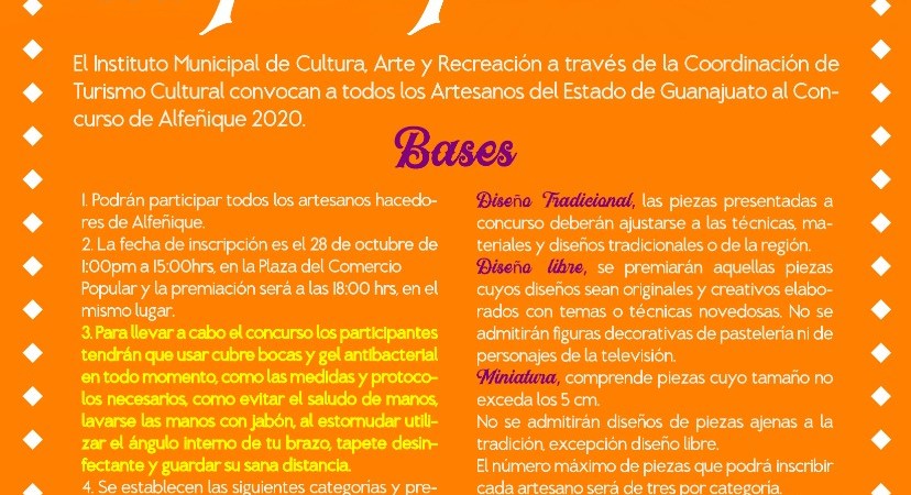 El Instituto Municipal de Cultura, Arte y Recreación (IMCAR), encabeza el concurso, en conjunto con artesanos del Estado de Guanajuato. Los interesados podrán participar en las categorías ‘Diseño Tradicional’, ‘Diseño Libre’ y ‘Miniatura’.