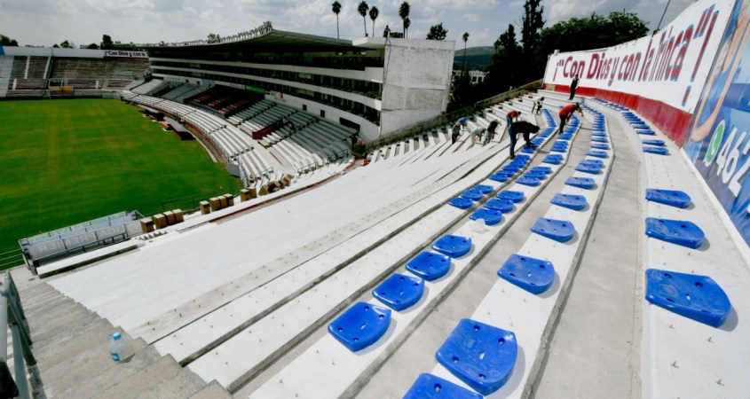 La renovación de la infraestructura del estadio Sergio León Chávez, sigue su curso, ahora con la colocación de butacas en las gradas que, en pocas semanas, cambiará la imagen interna del inmueble mundialista.
