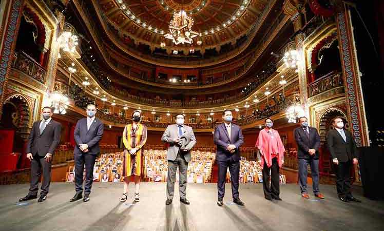 A puertas cerradas, el majestuoso Teatro Juárez fue el anfitrión de una inauguración atípica, donde únicamente estuvieron presentes las autoridades municipales, estatales y federales.