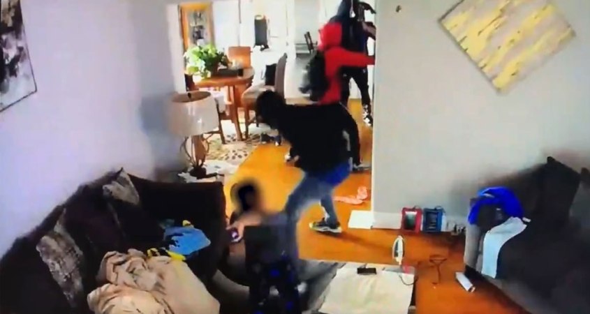 En el video se puede ver que cuatro sujetos, cubiertos sus rostros intentan someter a la mujer y al hijo mayor para llevarlos a otra habitación de la casa. En medio del ajetreo, el niño pequeño llamado David empuja a uno de los malhechores, les lanza sus juguetes y después incluso forcejea con otro para intentar arrebatarle la pistola.