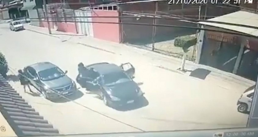 Uno de los delincuentes amaga con hacerle algo a la mujer, pero pronto desiste y sube al auto junto con sus compañeros.