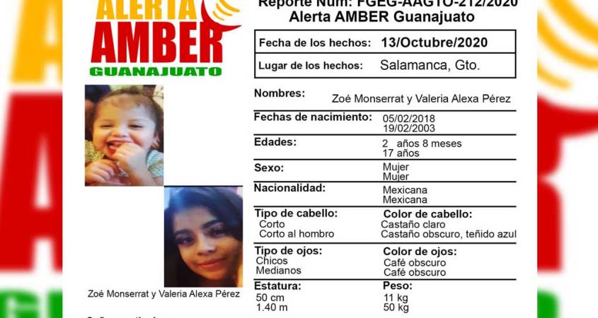 La Alerta Amber se activó en el estado de Guanajuato ante la desaparición de dos menores de edad en el municipio de Salamanca.