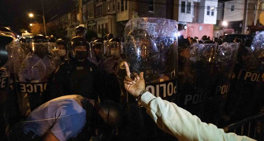 Un reportero en otra zona, West Philadelfia, donde otra multitud de alrededor de mil personas se reunía, vio a policías armados con bastones en enfrentamientos violentos con decenas de manifestantes.