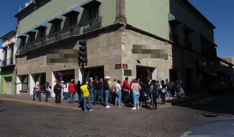 Aunque el semáforo retrocedió a color naranja, debido al repunte en los casos de covid-19 en el estado, estas instituciones financieras siguen presentado largas filas, que incluso doblan la esquina de donde se ubican estos organismos.