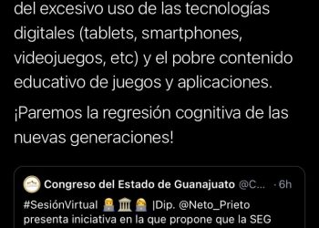 El diputado de Morena, Ernesto Prieto Gallardo, afirmó que el consumo de videojuegos en los últimos años ha provocado que las nuevas generaciones sean «menos inteligentes» que sus padres, por lo que promovió una reforma legal para que la Secretaría de Educación de Guanajuato (SEG) desarrolle juegos didácticos para dispositivos electrónicos.