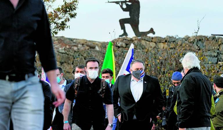 “El reconocimiento de una realidad”, repitió Pompeo durante la conferencia junto al primer ministro israelí, Benjamín Netanyahu, cuando anunció su visita a los Altos del Golán sirios anexionados o ensalzó la que hizo anoche a la Ciudad de David, en el territorio ocupado de Jerusalén Este.