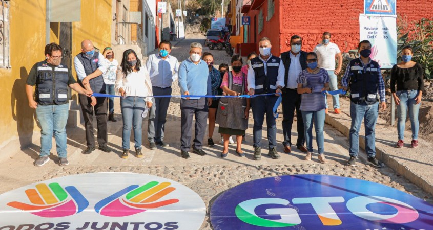 En la calle Del Cerrito se pavimentaron 86.7 metros lineales con piedra bola ahogada en mortero; se construyeron 170 metros cuadrados de banquetas en adoquín tipo San Luis y se añadieron 4 luminarias LED. Además, la red sanitaria fue renovada: se cambiaron 75 metros lineales de la línea de drenaje y 87.6 metros de la línea de agua potable.