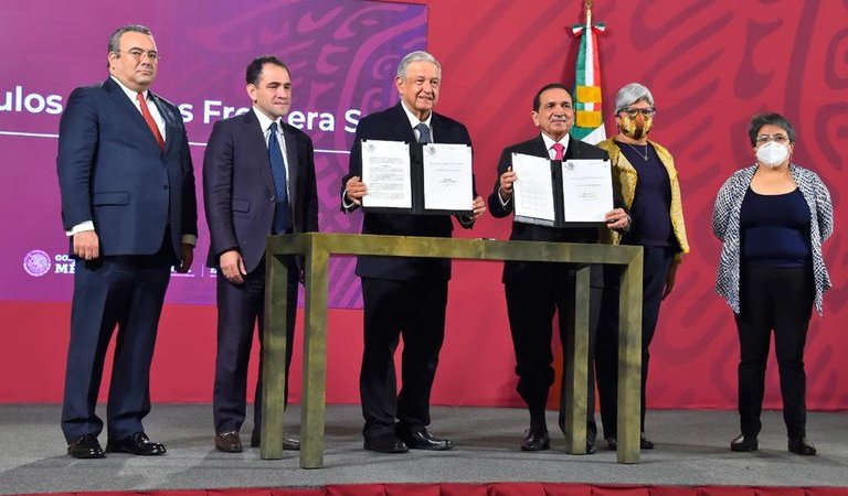 “Se van a suscribir dos decretos, uno para ampliar los apoyos fiscales en la frontera a lo largo de los 3,000 kilómetros de frontera con Estados Unidos. Y el otro anuncio muy importante es que en un trato parecido se aplica en la frontera sur de nuestro país para beneficio de las ciudades, de los municipios fronterizos de Chiapas, de Tabasco, de Campeche y de Quintana Roo”, dijo.