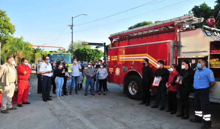 El H. Cuerpo de Bomberos de la ciudad rindió un homenaje póstumo al bombero J. Jesús Cruz Gámez quien formó parte de la institución por más de 35 años y quien falleció en días recientes por complicaciones de salud.