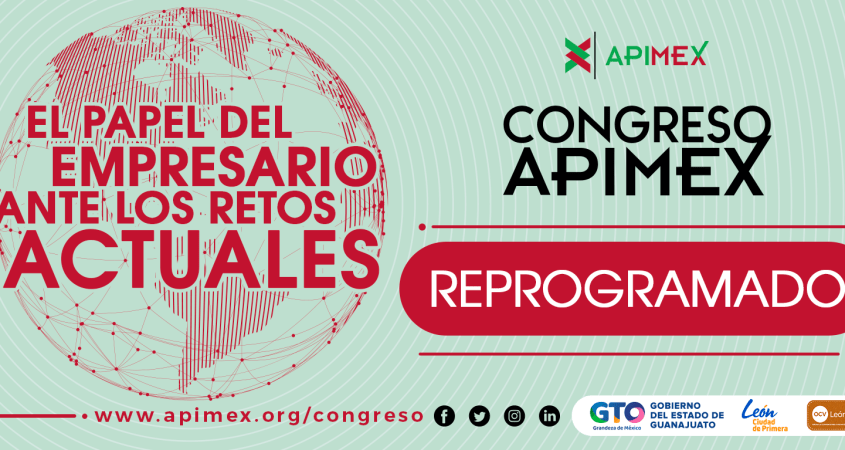 Debido al incremento de casos activos presentados los últimos días y a la tendencia a la alza de contagios por Covid-19 que se ha reportado en Guanajuato y en el país en general, el Consejo Directivo de la Asociación de Empresas Proveedoras Industriales de México, APIMEX, en común acuerdo con los conferencistas invitados, tomaron la decisión de reprogramar la fecha del Congreso APIMEX que se llevaría a cabo el miércoles 9 de diciembre del presente año.