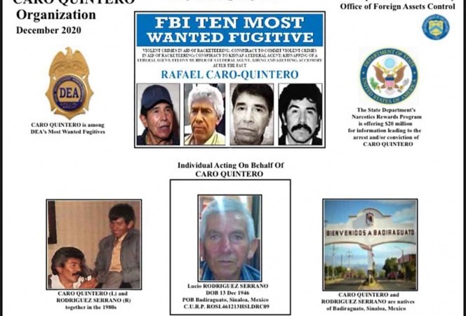 El FBI ofrece una recompensa de 20 millones de dólares por «RCQ», un miembro del cartel de Sinaloa señalado como autor intelectual del asesinato del agente antidrogas estadounidense DEA Enrique «Kiki» Camarena en la década de 1980.