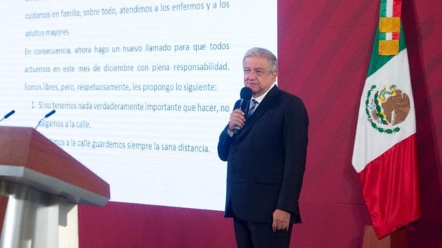 El presidente Andrés Manuel López Obrador llamó a los ciudadanos a evitar salir de sus casas, salvo por lo indispensable, y aunque diciembre es un mes de celebraciones, no realizar reuniones amplias ni visitar a familiares para contener la reciente crecida de contagios de Covid-19 en el país.