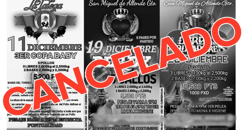 La Pelea de Gallos será suspendida y en caso de realizarse, se procederá a aplicar las sanciones mencionadas para quien participe en el evento.