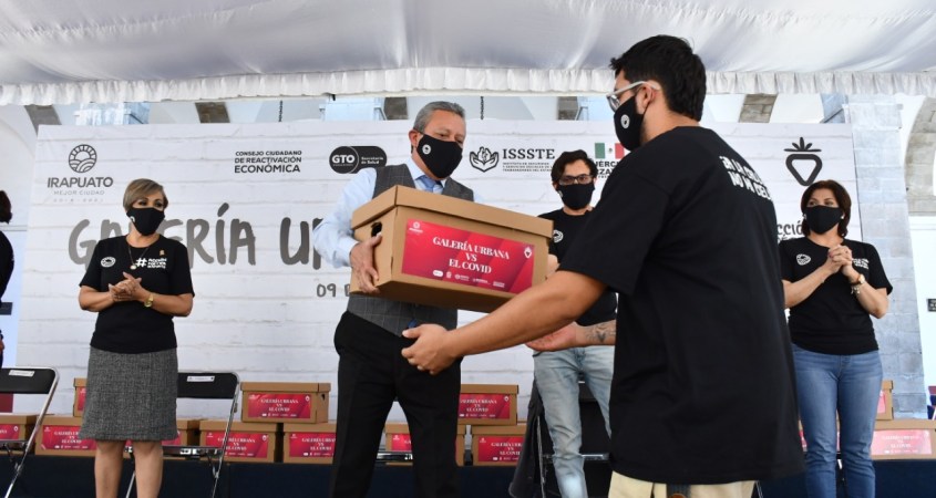 Artistas urbanos locales, recibieron por parte del Gobierno Municipal, aerosoles y materiales necesarios para crear mensajes, con frases y diseños, de concientización a través del programa ‘Galería Urbana Contra Covid’.