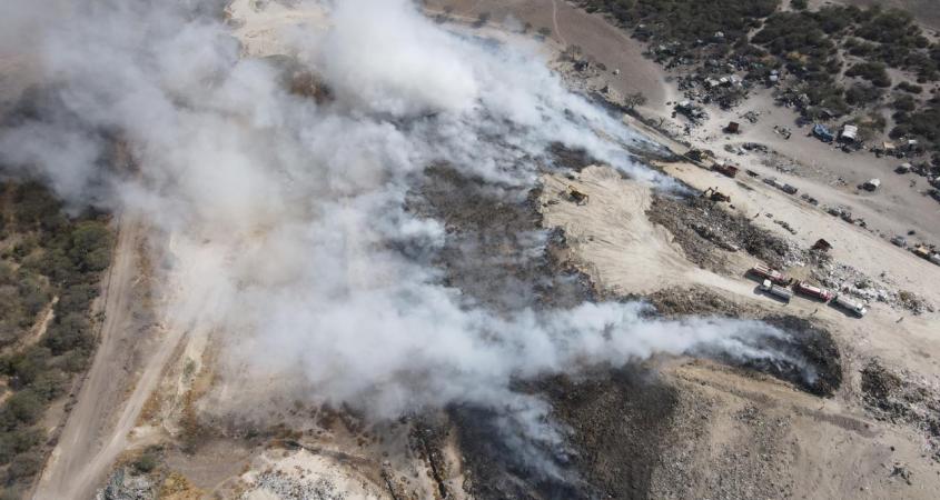 La Secretaría de Seguridad Pública a través de la dirección de Protección Civil informa que el incendio presentado en el relleno sanitario municipal está controlado en un 30%; el área afectada confirmada es de 2 hectáreas.