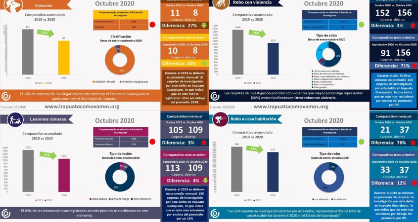 - De septiembre 2020 a octubre 2020 disminuyó la violación en un 20%