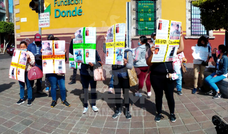 Familiares de jóvenes desaparecidos en Celaya y Villagrán hicieron una protesta el mediodía de este lunes en el bulevar Adolfo López Mateos, en la esquina de Ignacio Allende, para de ahí caminar unos metros hasta afuera de la Presidencia Municipal.