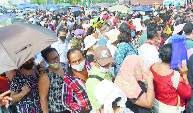 Ayer miles de personas se concentraron en las instalaciones del Parque Tabasco tras ser convocados por el gobierno para cobrar el bono para damnificados por las inundaciones pasadas, a pesar de que en la entidad se registren más contagios por Covid-19 e incluso haya nuevas medidas de restricción para evitar la movilidad y así reducir el número de casos.