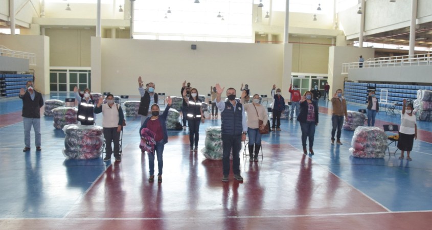El presidente municipal, Luis Alberto Villarreal García y miembros del Ayuntamiento entregaron cobertores a los delegados de 14 comunidades como parte del Programa Invernal 2020.