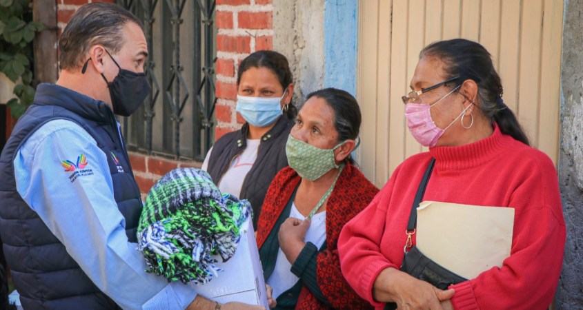 El presidente municipal, Luis Alberto Villarreal García en compañía de la síndico del Ayuntamiento, Verónica Agundis, las regidoras Luz María Gutiérrez y Patricia Villa, así como del regidor Humberto Campos entregó cobijas a vecinos de la colonia Allende gracias al Programa Invernal 2020.