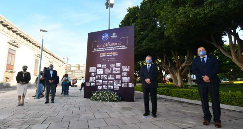 En memoria del personal de salud que perdió la vida al trabajo en la primera línea de batalla contra Covid-19, en Guanajuato, autoridades de Irapuato y de la Secretaría de Salud, montaron una guardia de honor para rendirles un homenaje.