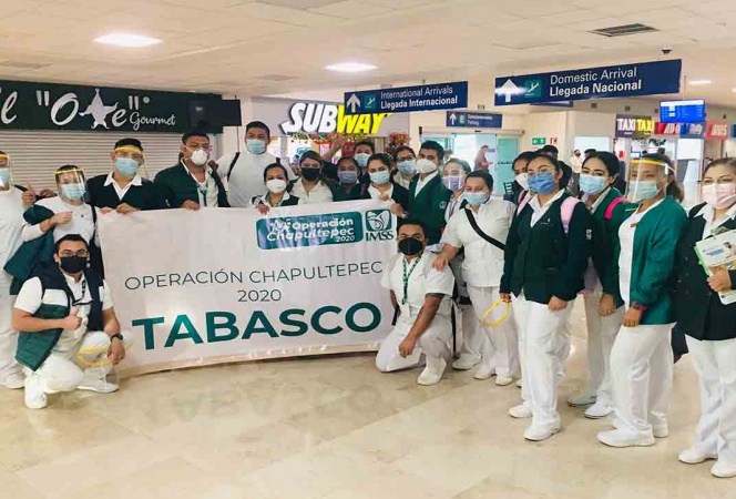 Un contingente de 25 enfermeras y enfermeros del Hospital General de Zona (HGZ) No. 46 del Instituto Mexicano del Seguro Social, (IMSS) de Villahermosa, Tabasco, arribaron hoy a la Ciudad de México para sumarse a la Operación Chapultepec, cuyo objetivo es reforzar los Equipos de Respuesta COVID en 7 hospitales del Valle de México y de Baja California.